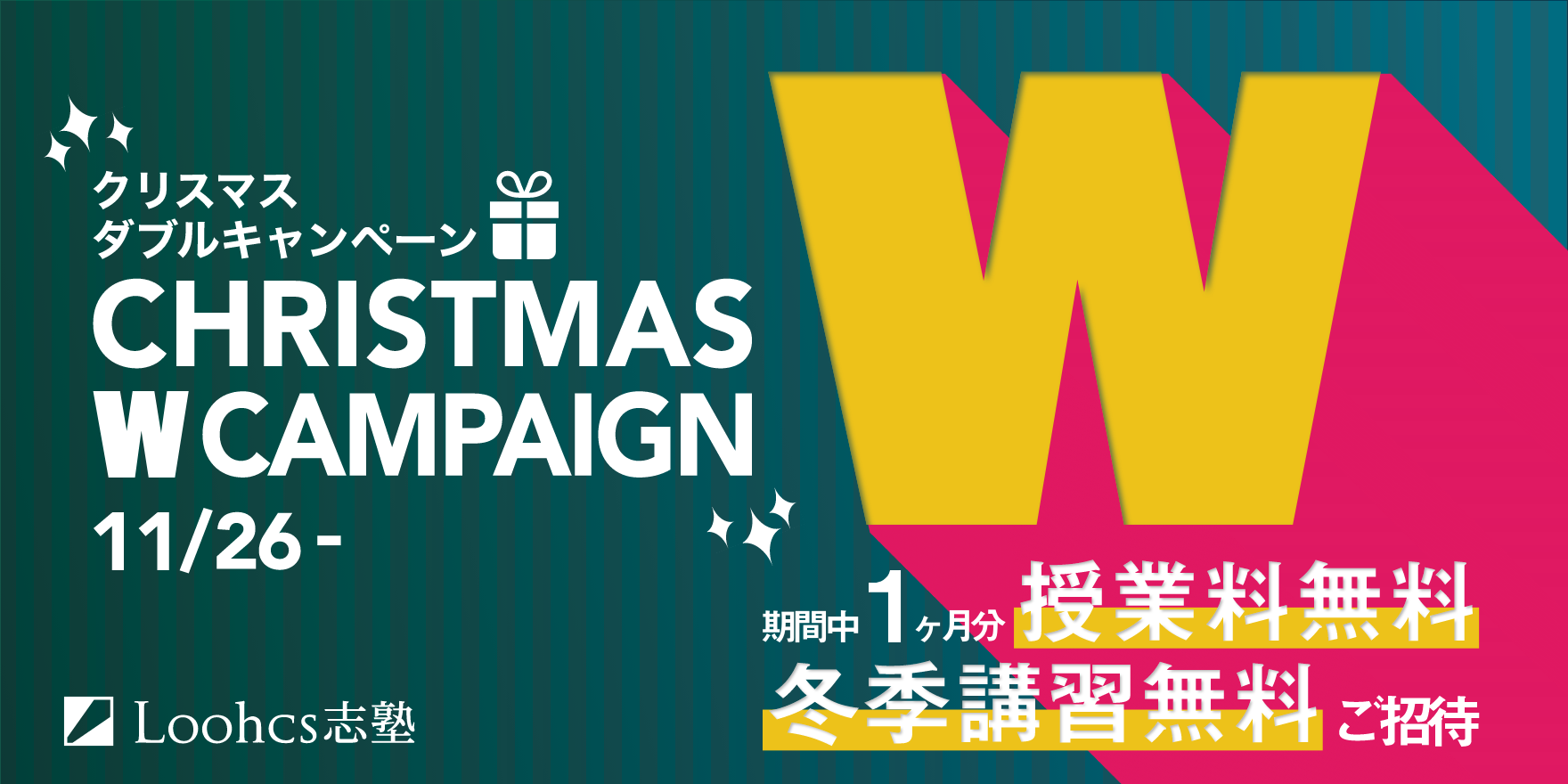 少しでも高校生に合格のチャンスを作りたい。そこで、多くの受験生がロケットスタートを切っていただくために、授業料1ヶ月分と冬期講習が無料になる「クリスマスW無料キャンペーン」を実施いたします。