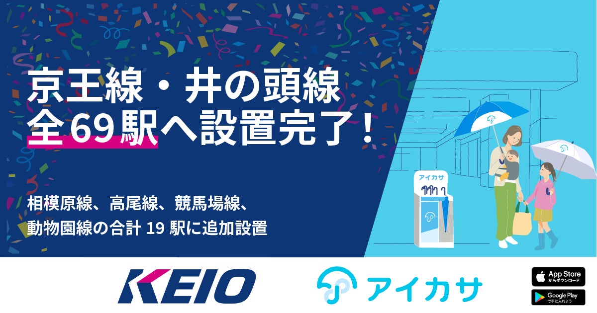 アイカサ、京王電鉄の運営する69駅全てに配備完了!傘を持ち歩く必要のない沿線へ