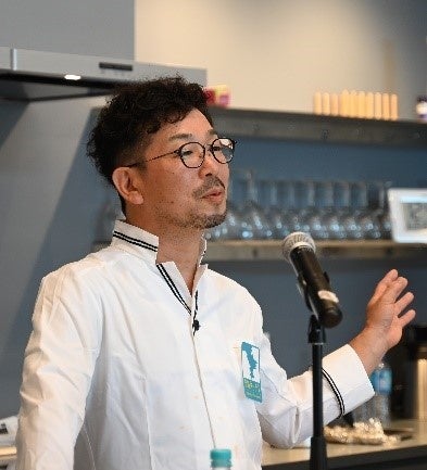 「半島キッチン」第1回目は、「半島キッチンオフィシャルシェフ」である横須賀出身の吉田友則シェフをお招きし、よこすかポートマーケットが元マグロ倉庫であったことにちなみ「マグロ」をテーマとしたイベントが開催されました。吉田シェフがつくるマグロ料理をいただきながら、三浦半島の食の歴史や漁師めしである塩マグロの紹介、地元の漁港に揚がる未利用魚の活用など、食文化にまつわるお話をお伺いしました。また、食後には、その土地の風景とともに楽しむ「ロケーションコーヒー」として、横須賀出身の焙煎士 三井雅樹氏により特別にセレクトしていただいた珈琲豆をご参加者の皆様とミルで挽き、テラスから見える港を眺めながらお楽しみいただきました。参加者の方々には、「シェフの三浦半島に対する気持ちが伝わり、より一層楽しさ美味しさが増えた。」「街を巻き込んだ大きなイベントにつなげていけたら横須賀の発展につながると期待している。」といった感想をいただきました。