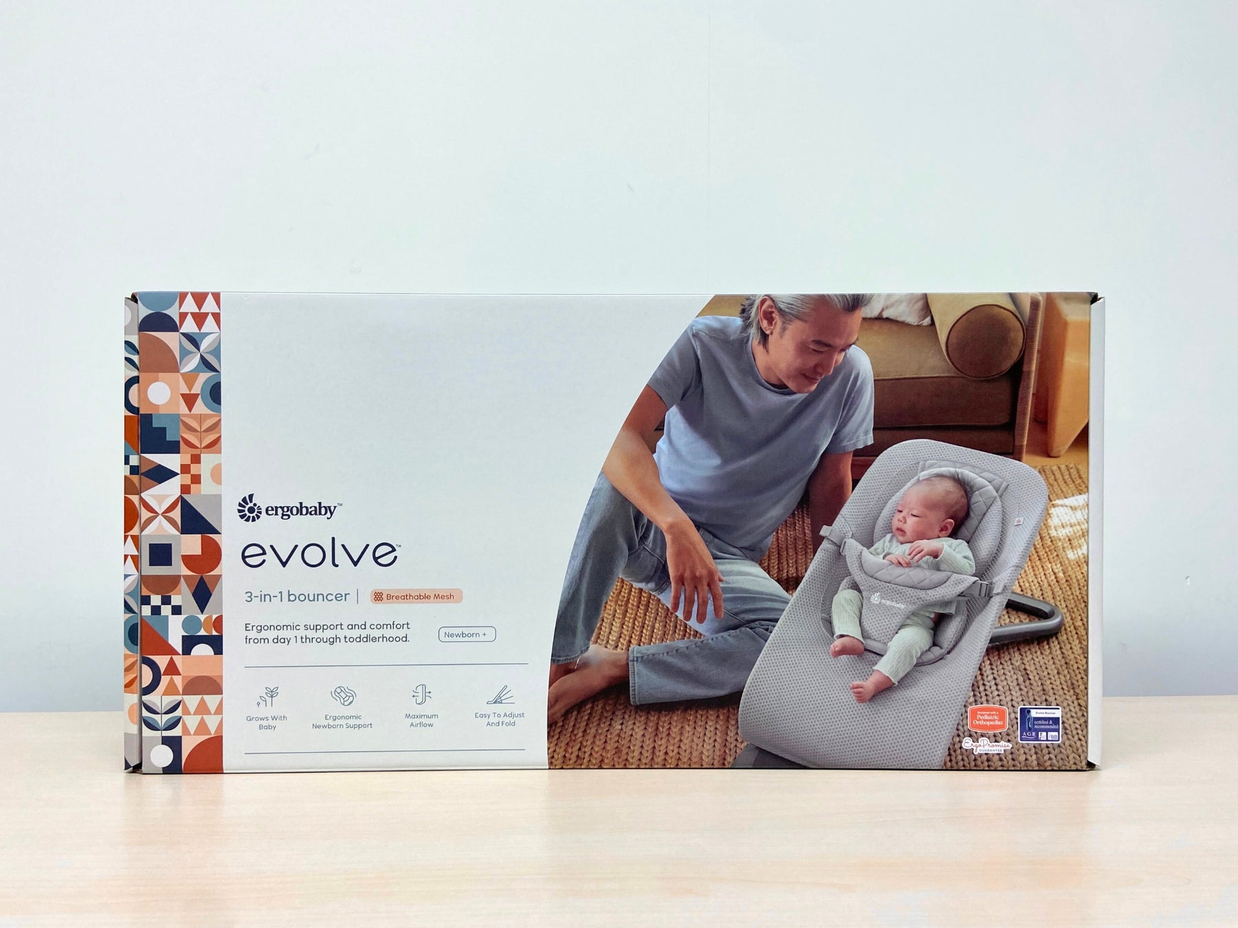 バウンサーはあると暮らしが楽になる存在ですが、自家用で購入するには躊躇されることも。そのため、その便利さを知る子育ての先輩から、「一度使ってみてほしい!」というコメントとともに、出産祝いのギフトに選ばれるケースも多くあります。こうした背景から、ギフトに選びやすい、デザイン性のあるフルカラーのパッケージにリニューアルいたしました。