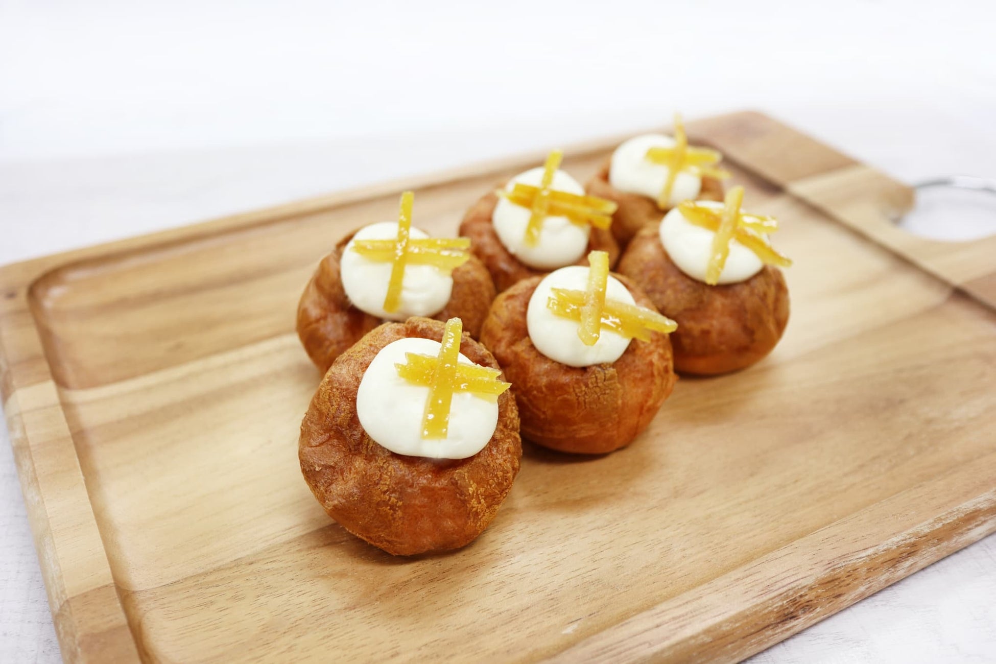 生地のベースに「大豆粉」を使用し、独自の配合で、‟ふんわりもちっとした食感”のシュー生地に仕上げました。クリームは、レモンを皮ごとじっくり煮込み、島根養蜂園の生はちみつと合わせた特製ジュレに北海道産生クリームとクリームチーズを使用。