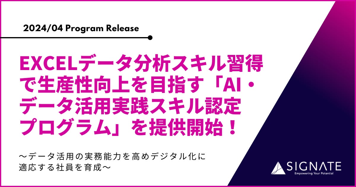 SIGNATE、Excelデータ分析スキル習得で生産性向上を目指す「AI・データ活用実践スキル認定プログラム」を提供開始!