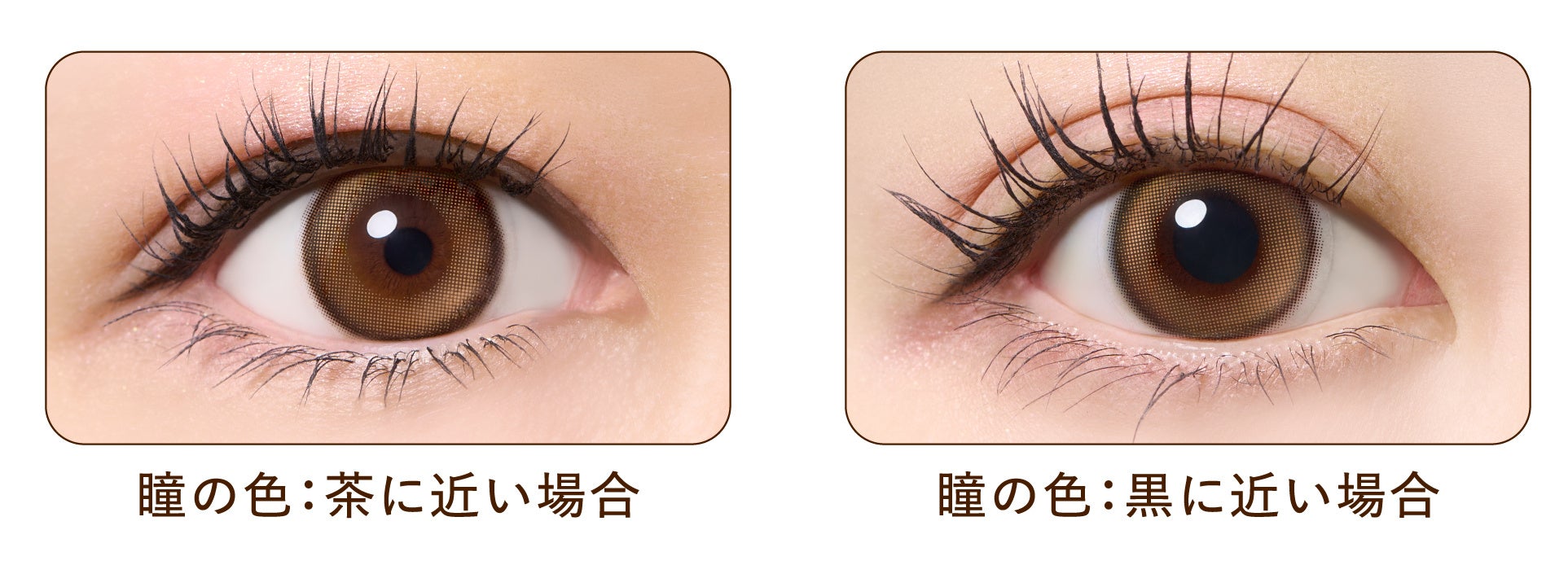2025年12月には、12年愛され続けるロングセラーカラー「ヒロインブラウン」に加え、“理想の眼差しを演出する”新色2色が登場。新色登場とともにパッケージデザインを一新し、レンズ保存液への天然のうるおい成分の配合やUVカット機能は引き続き採用しております。