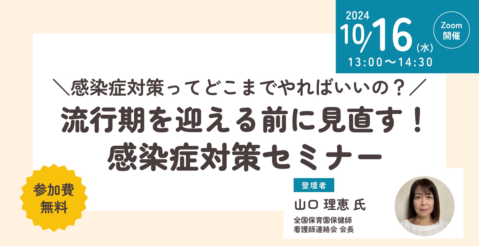 保育関係者向け「流行期を迎える前に見直す!感染症対策セミナー」をオンラインで無料開催