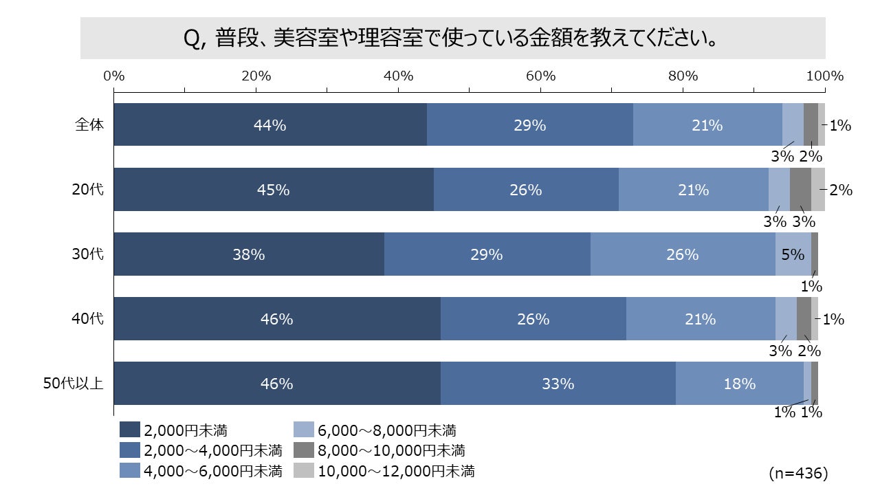 2. 20代、30代は美容室、40代以上は理容室利用が多数。