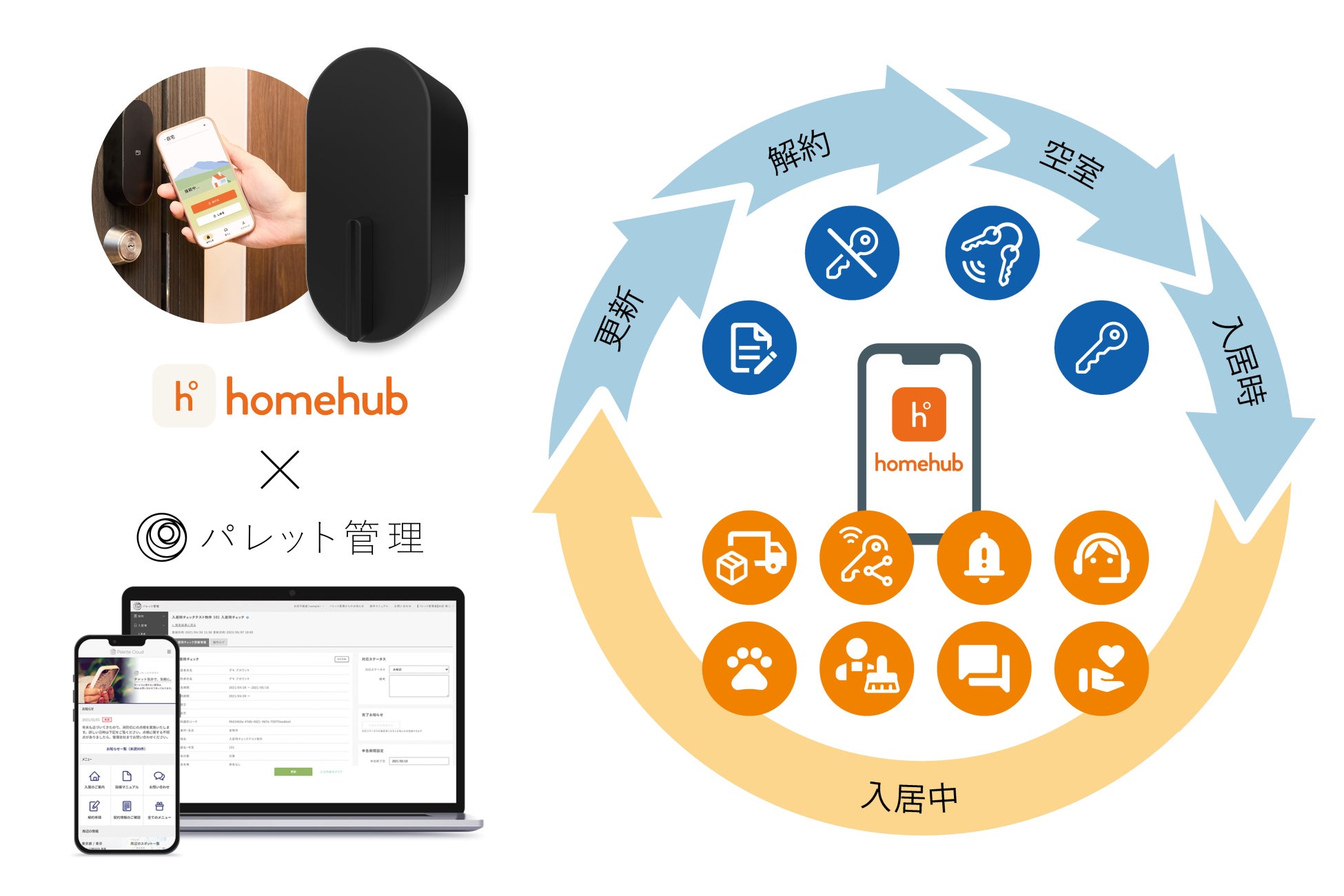 ※「ビットキー」「homehub」は株式会社ビットキーの登録商標です。「パレットクラウド」「パレット管理」はパレットクラウド株式会社の登録商標です。