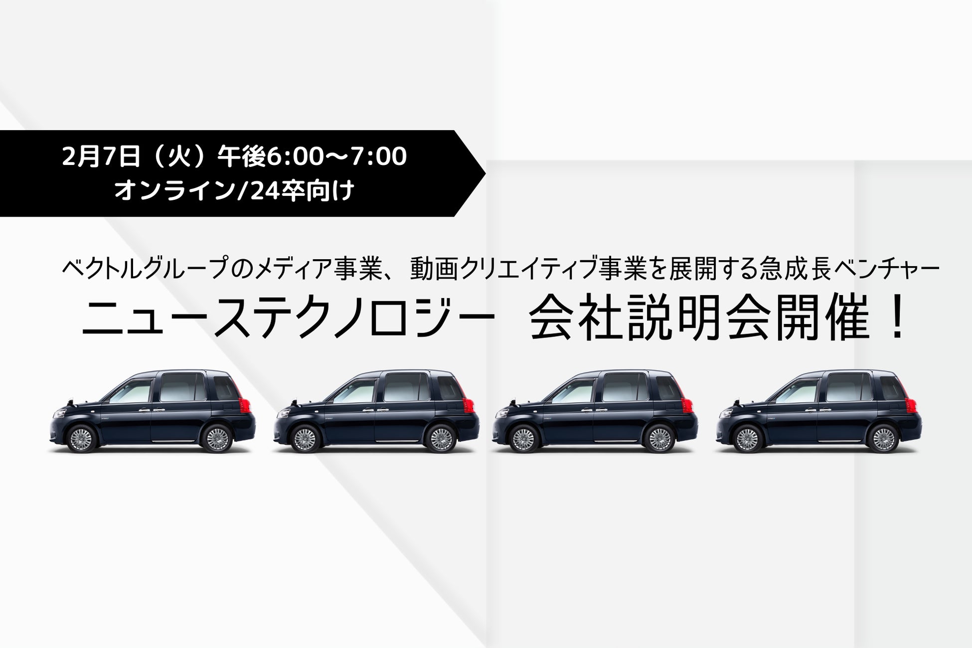 モビリティプラットフォーム事業やメディア事業を展開する株式会社ニューステクノロジー(本社:東京都港区、代表取締役:三浦純揮、以下ニューステクノロジー)は、2023年2月7日(火)18時より、24卒の学生を対象とする会社説明会をオンラインにて開催します。