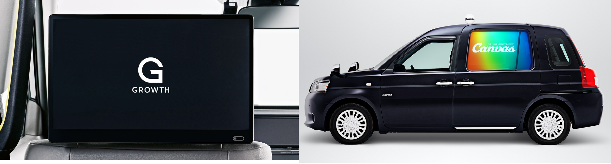 都内のビジネスパーソンに情報を届ける、東京都内最大級※1のタクシーサイネージメディア「GROWTH」や、日本初※2のモビリティ車窓メディア「Canvas」といったタクシー起点のメディアに加え、高級美容室やオフィスビルの喫煙ルームといった空間に適したサイネージメディアを開発。