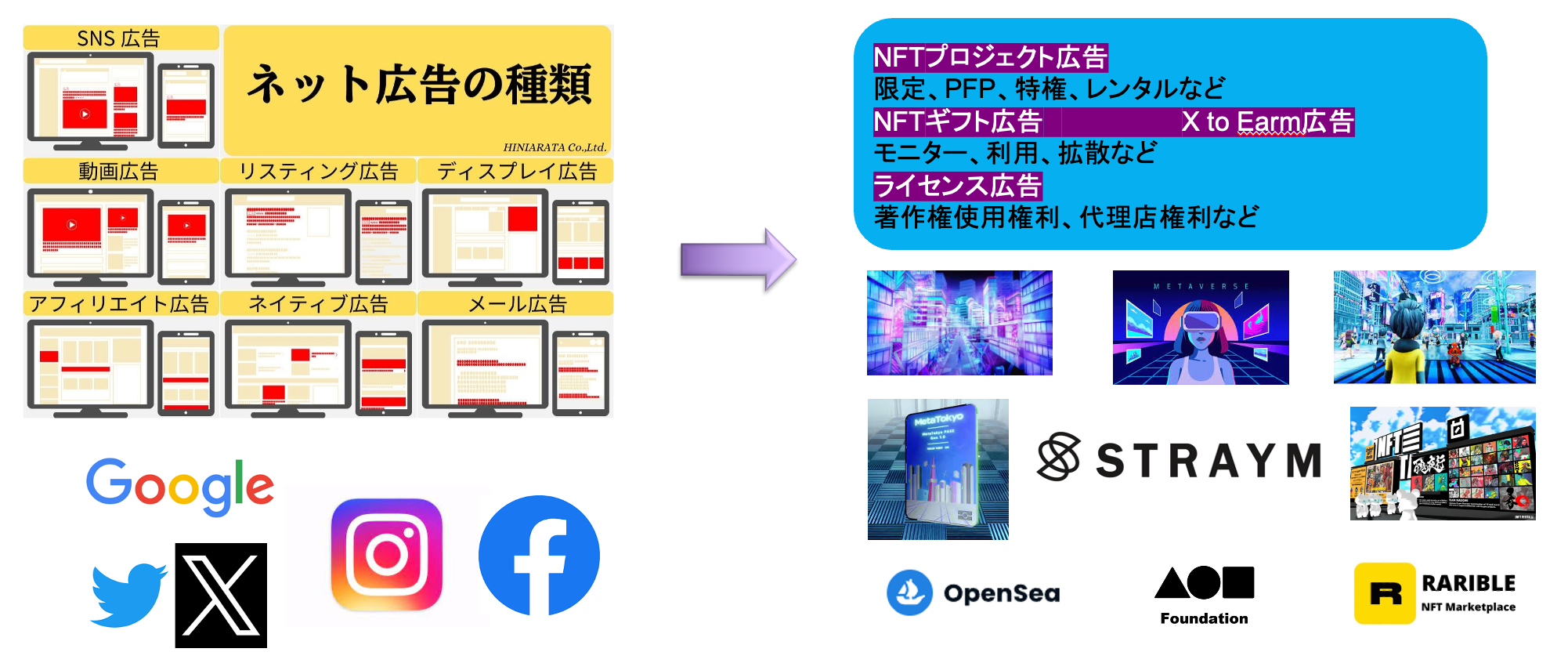 ITのプラットフォームの主役が、Web1の検索エンジンから、Web2のSNSへ移行し、更に今後Web3でDiscord等のコミュニティ型のプラットフォームに移行する中、PRや広告などの手法も変わっていきます。PRや広告のプラットフォームの主役は、NFTプラットフォームやメタバースに変わり、NFTはメタバース空間へのパスポートとなったり、NFTホルダーには継続的に新たな体験価値を提供したり、特定のNFTホルダー限定のコミュニティが作りだされます。