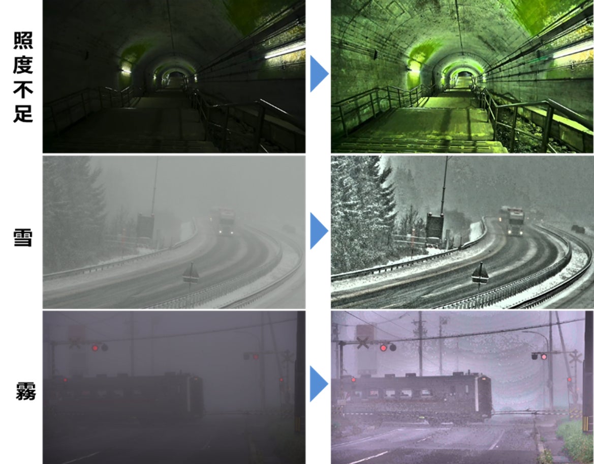 今回、映像の統合から共有、鮮明化、分析、利活用までを一貫したサービスとして提供することで、道路、上下水道、電力、鉄道など幅広い場面で映像の利活用を推進し、老朽化した設備の劣化や不具合を早期に発見するとともに、フロントラインワーカーのさらなる安全性の向上と業務効率化をめざしています。