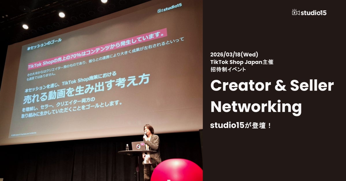 TikTokを中心としたショートムービー(短尺動画)領域で広告代理店事業・プロダクション事業を展開するstudio15株式会社(スタジオフィフティーン、本社:東京都世田谷区、代表取締役:岩佐 琢磨、以下 studio15)は、2026年3月18日に開催されたTikTok Shop Japan主催の招待制イベント「Creator & Seller Networking」に参加。studio15が登壇したことをお知らせいたします。