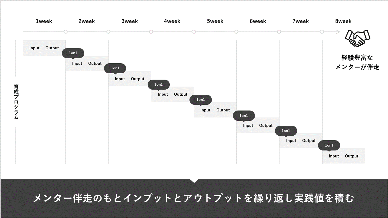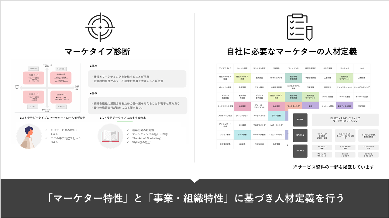 サービス内容:マーケター人材定義/2ヶ月プログラム受講/メンター伴走・週次1on1
