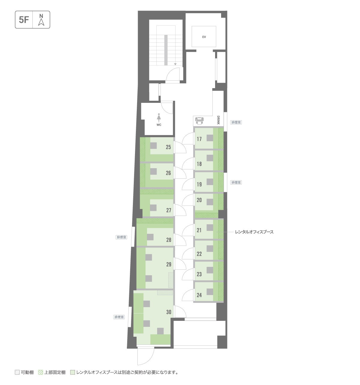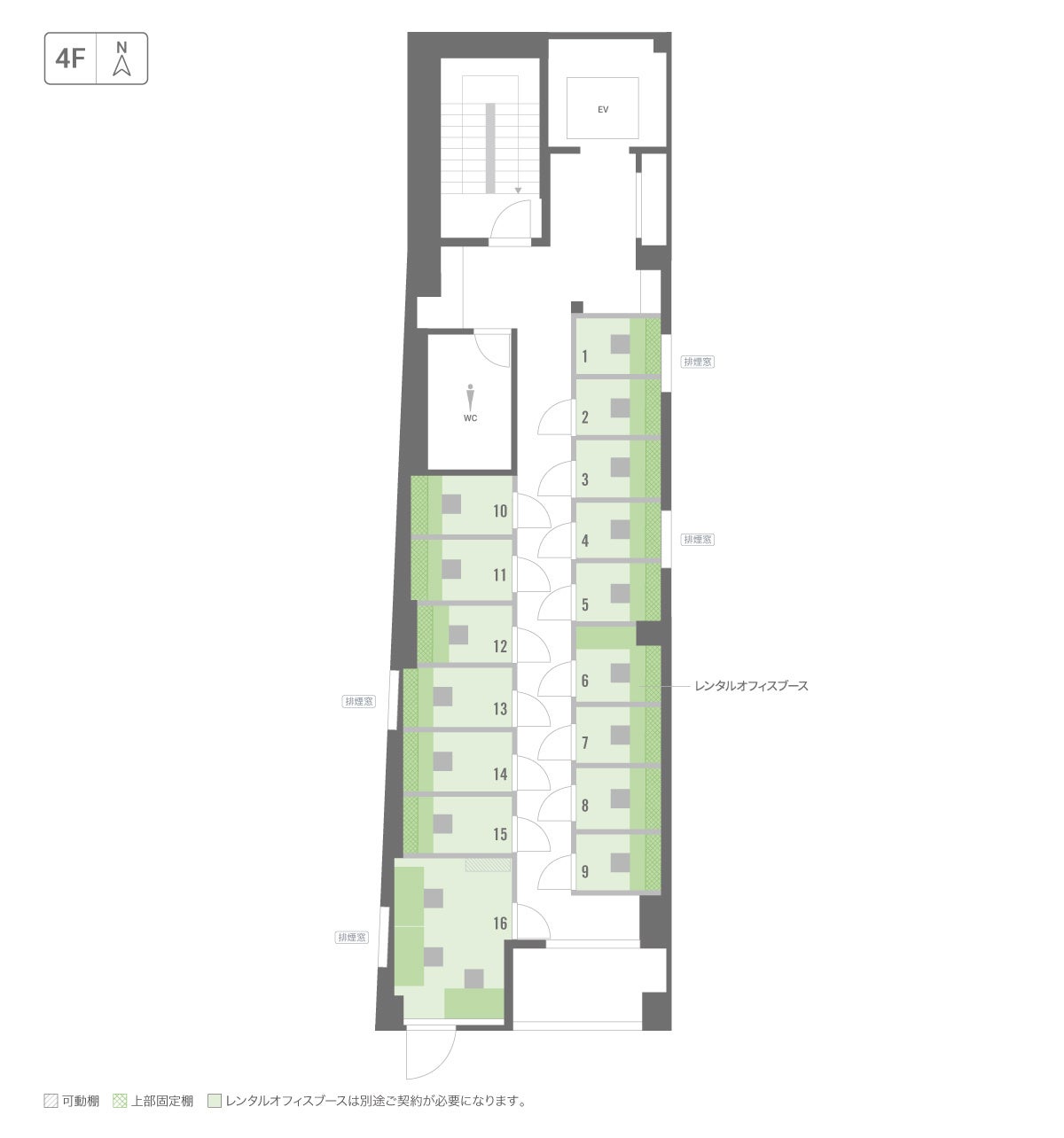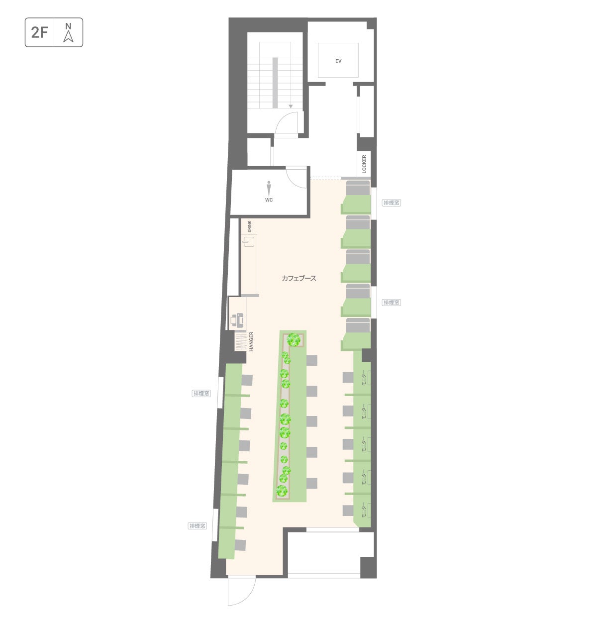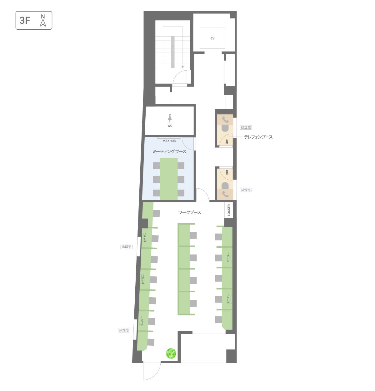 設備:Wi-Fi、フリードリンク、無料プリンター、ロッカー、ポスト、登記可、会議室、WEB会議用個室