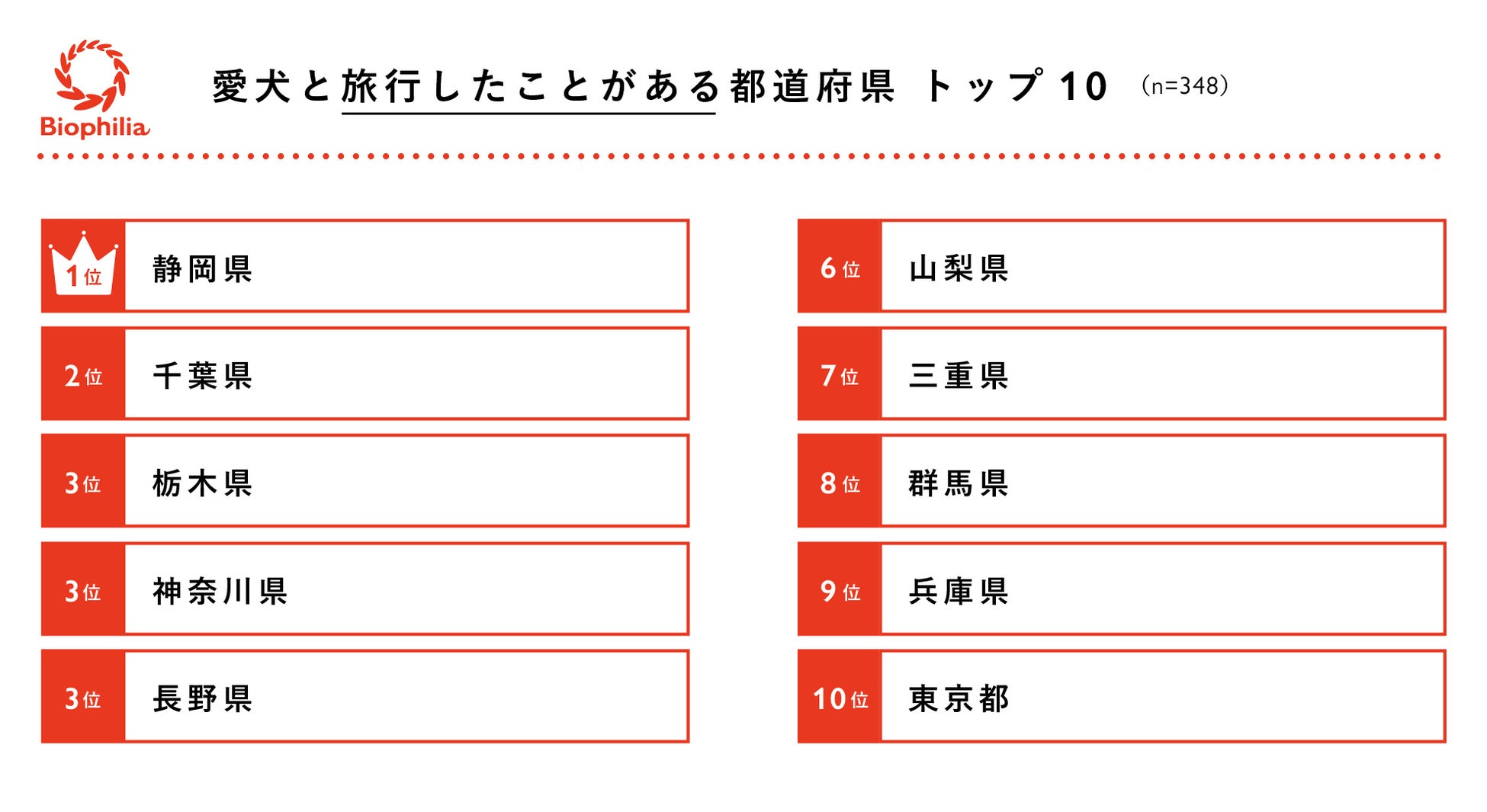 愛犬と行った旅行先ランキング、1位:静岡県、2位:千葉県、3位:栃木県