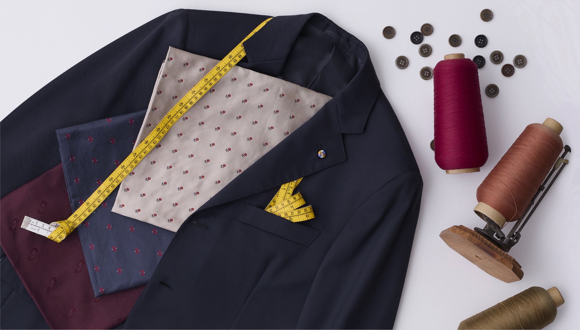 新しいデザインやコンセプトをファッション感度高く生み出す仏国の感性と、服飾文化の背景と伝統技法に裏打ちされた高い品質を提供する英国やイタリアの織物の魅力を融合させた高級生地ブランド<ドーメル>。期間中はブランド専属フィッターが来店、今回のイベントのためにご用意する特別な生地を含む豊富な服地の中からお好みのものをお選びいただき、スーツ・ジャケットのオーダーを承ります。