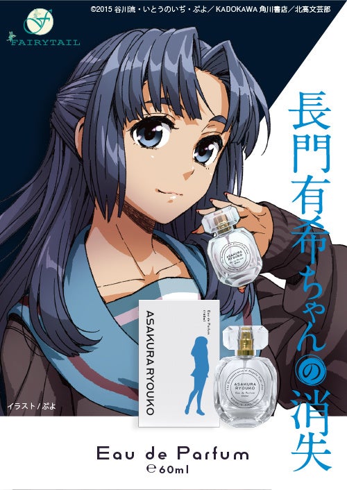香水の輸入販売を手がけるフェアリーテイル株式会社(東京都港区)は、アニメ「長門有希ちゃんの消失」より、長門有希・朝倉涼子・涼宮ハルヒをイメージした香水、雑貨を12月17日(金)より、公式オンラインストア、Amazonにて予約販売を開始いたします。中野ブロードウェイの直営店舗「FAIRYTAIL」でも発売されます。 (※店頭販売・発送開始は1月末予定)