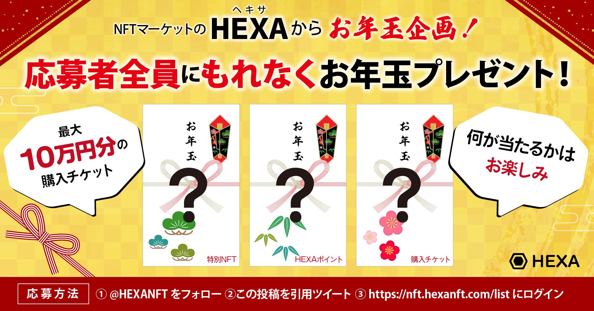 HEXA(ヘキサ)では日頃のユーザー様への感謝と、これからNFTに触れられるご新規さんなどすべてのNFTに興味を持たれているユーザー様を対象にお年玉企画を実施しています。