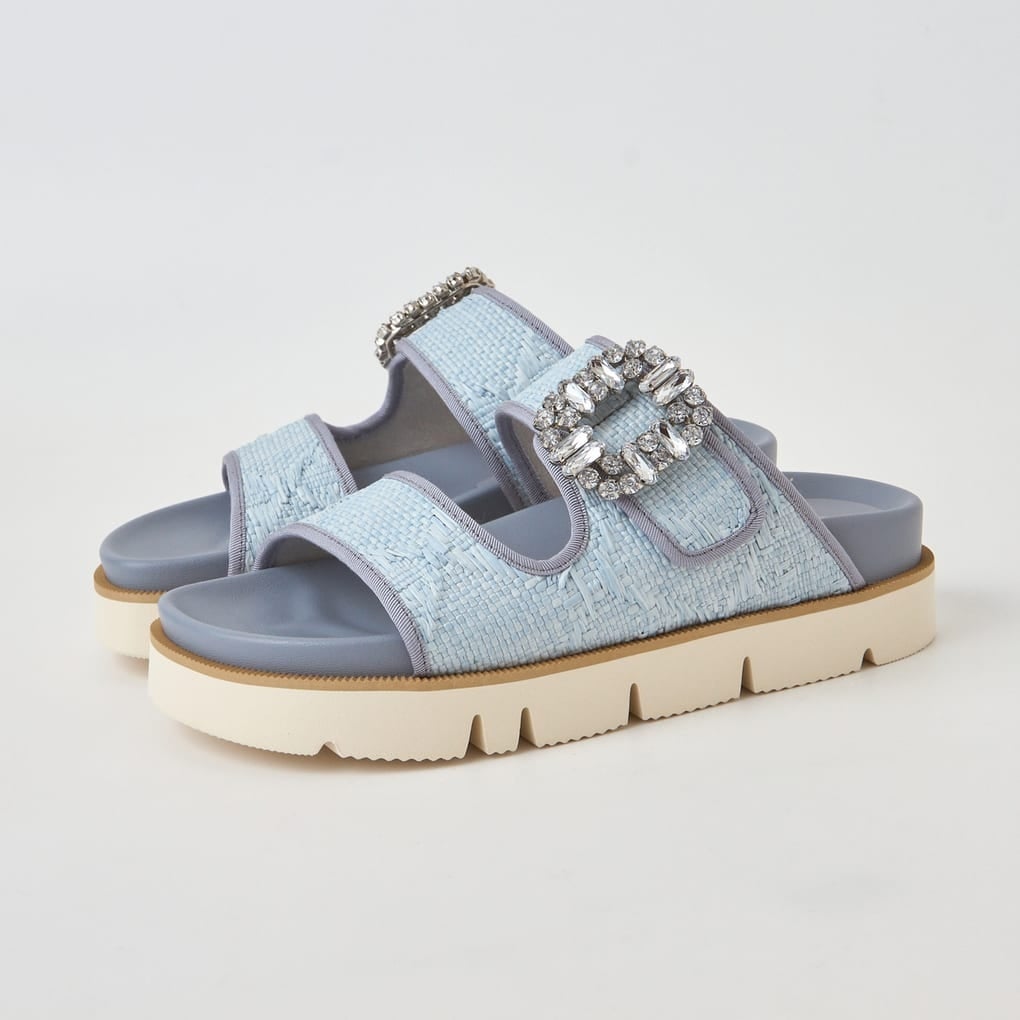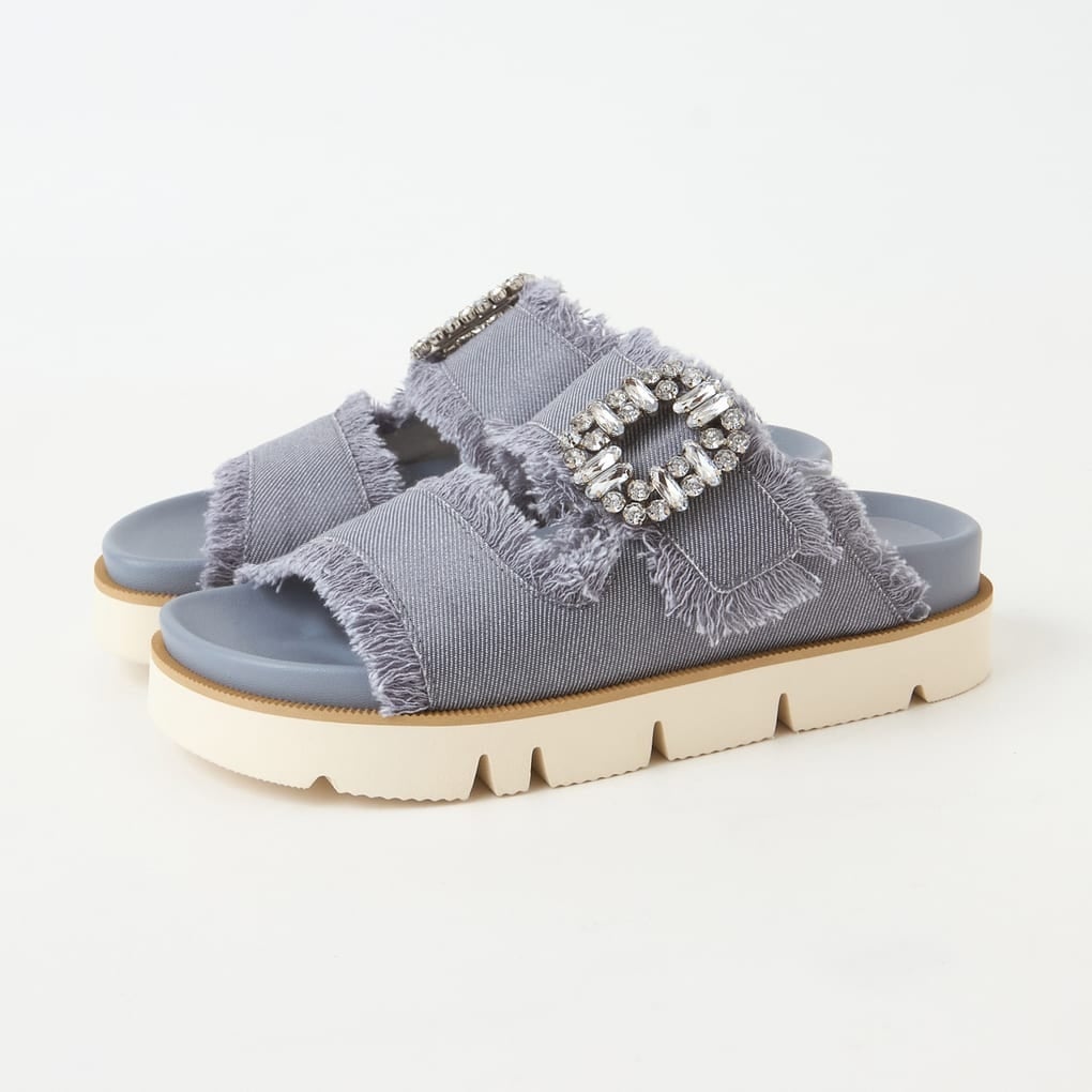 大ぶりのビジューが足元に華やかさをプラスしてくれるフットベットサンダルにWEB限定カラーが登場。フットベットのインソールで長時間でも快適な履き心地のため、夏のおでかけにもおすすめの一足です。