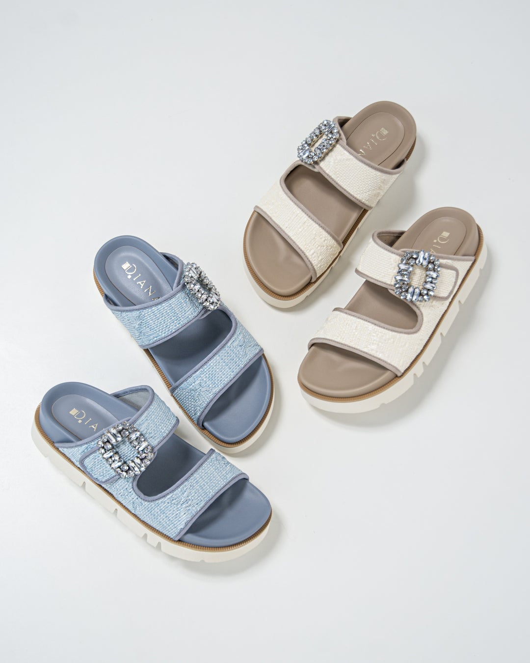 【ダイアナ】大ぶりのビジューが華やかなフットベットサンダルにWEB限定カラーが登場!