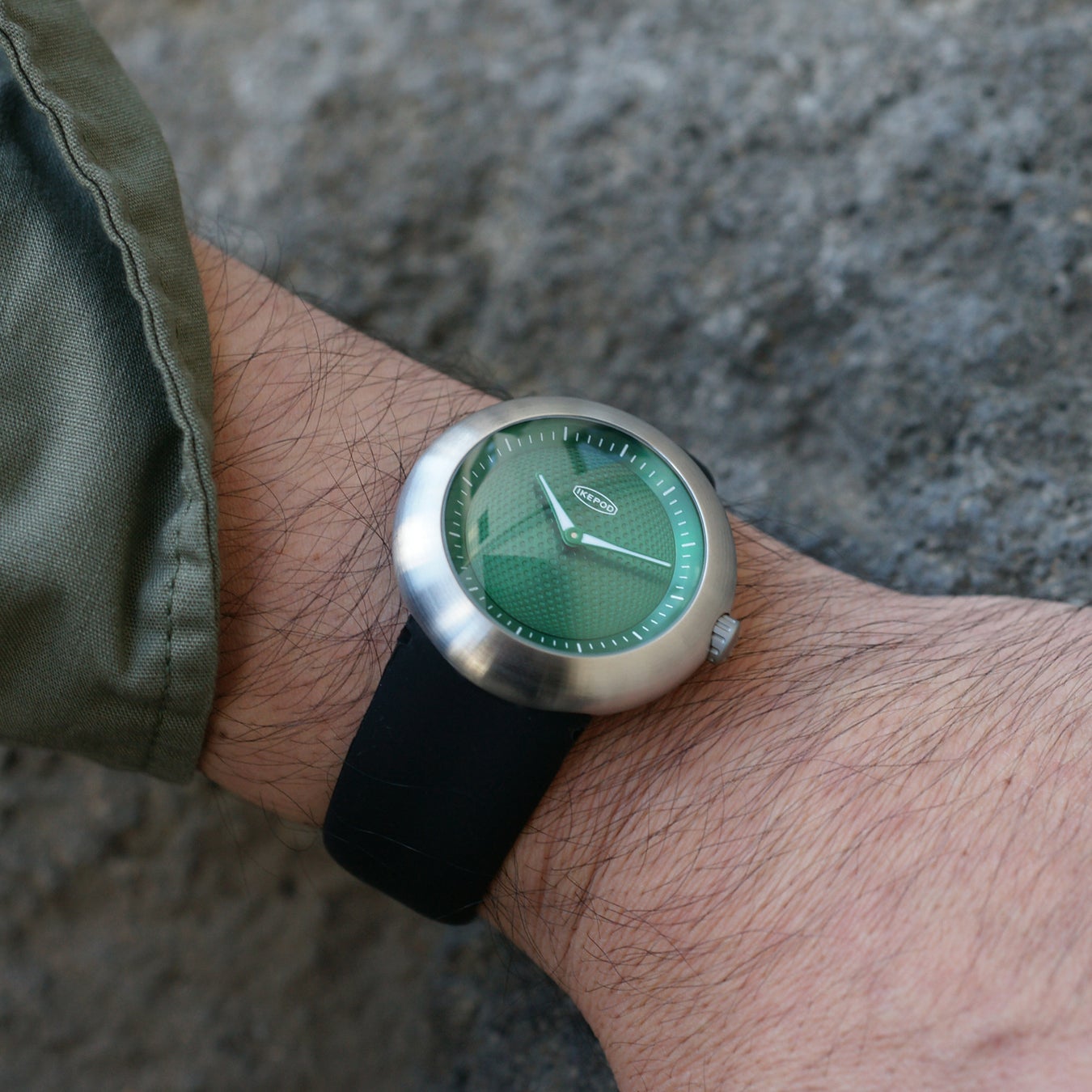 ケース径のサイズを変えず、薄型化を図った新型ケースに、アイコニックなアワーグラスダイヤル、ゴルフボールの様なテクスチャーのグリーン・ブルーダイヤル、トレンドカラーでもあるターコイズブルーのダイヤルなどを合わせた新たなDUOPODは、この素晴らしいブランドを改めて多くの人に手にしてもらうための魅力的な価格設定、デザインです。