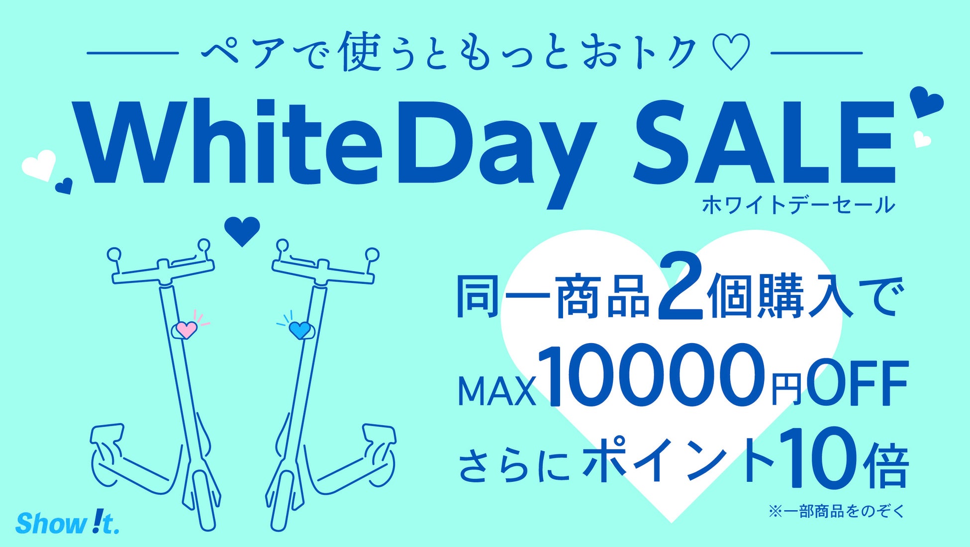 【数量限定】同一商品2個購入すると使える割引きクーポンで、お得にお買い物できます!一部商品はポイント10倍プレゼントも実施!楽天市場「Show !t」で、2月28日~3月14日まで期間限定セールを開催