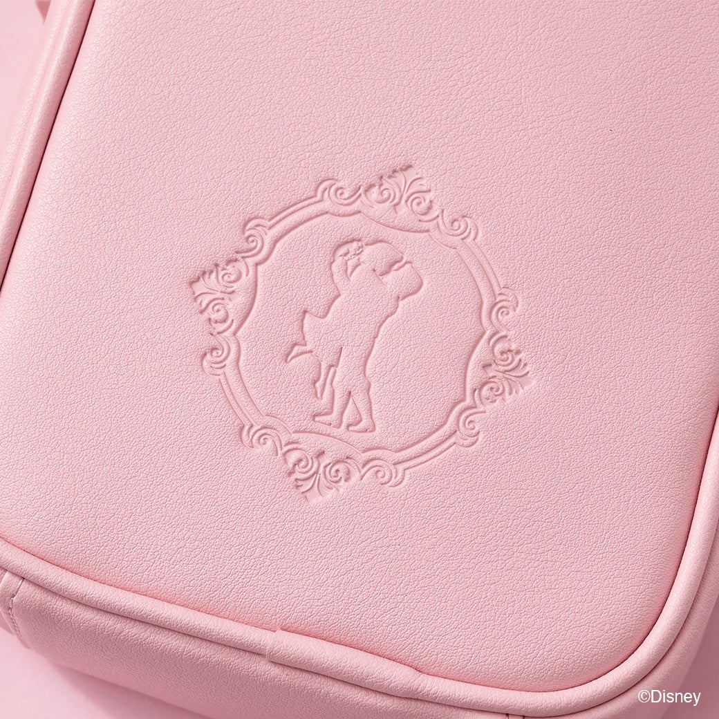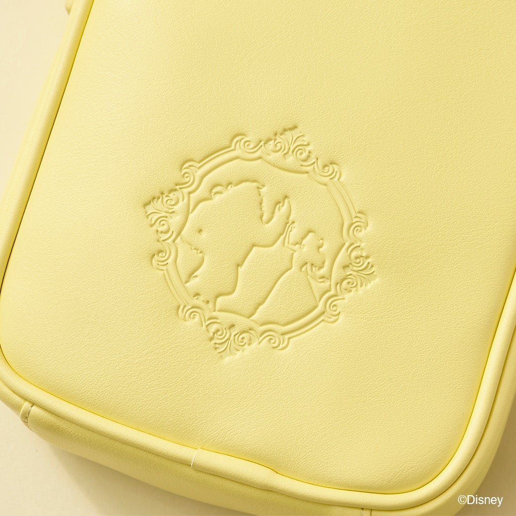 物語の象徴でもある、バラや「ベル」をイメージしたイエローのカラーストーンのデザイン。「ベル」と野獣が躍る姿を連想させるような型押しが。