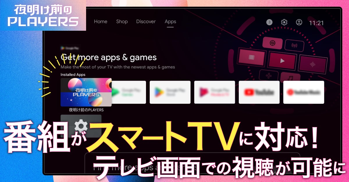 PLAY プロデュース対談番組 『夜明け前のPLAYERS』、Android TV・Fire TV向けアプリの提供を開始!