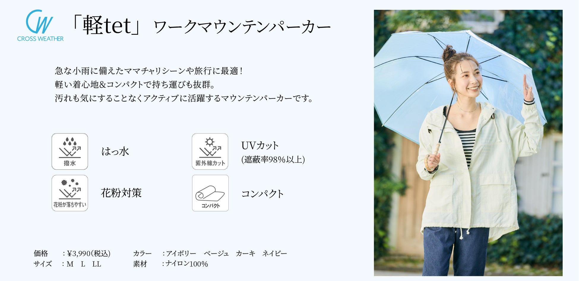 近年の気温上昇、豪雨の増加、熱中症リスクの増加など、気候変動による影響が拡大しています。特殊な天候に少しでも快適に過ごせるよう、汗がまとわりつかないサラサラ素材を使用したり、1枚着るだけで温かいと感じるアイテム、突然の雨にも安心な撥水素材を使用したりと、暑さ、寒さ、雨、花粉、風、湿度といった気候・天候の変化に対応できるアイテムを展開します。