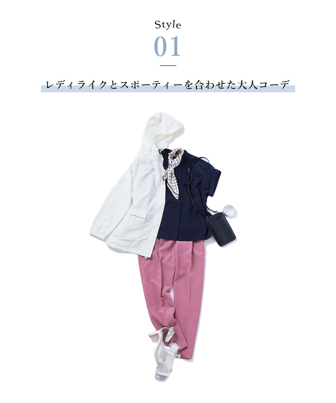 ■Style 01 レディライクとスポーティーを合わせた大人コーデ