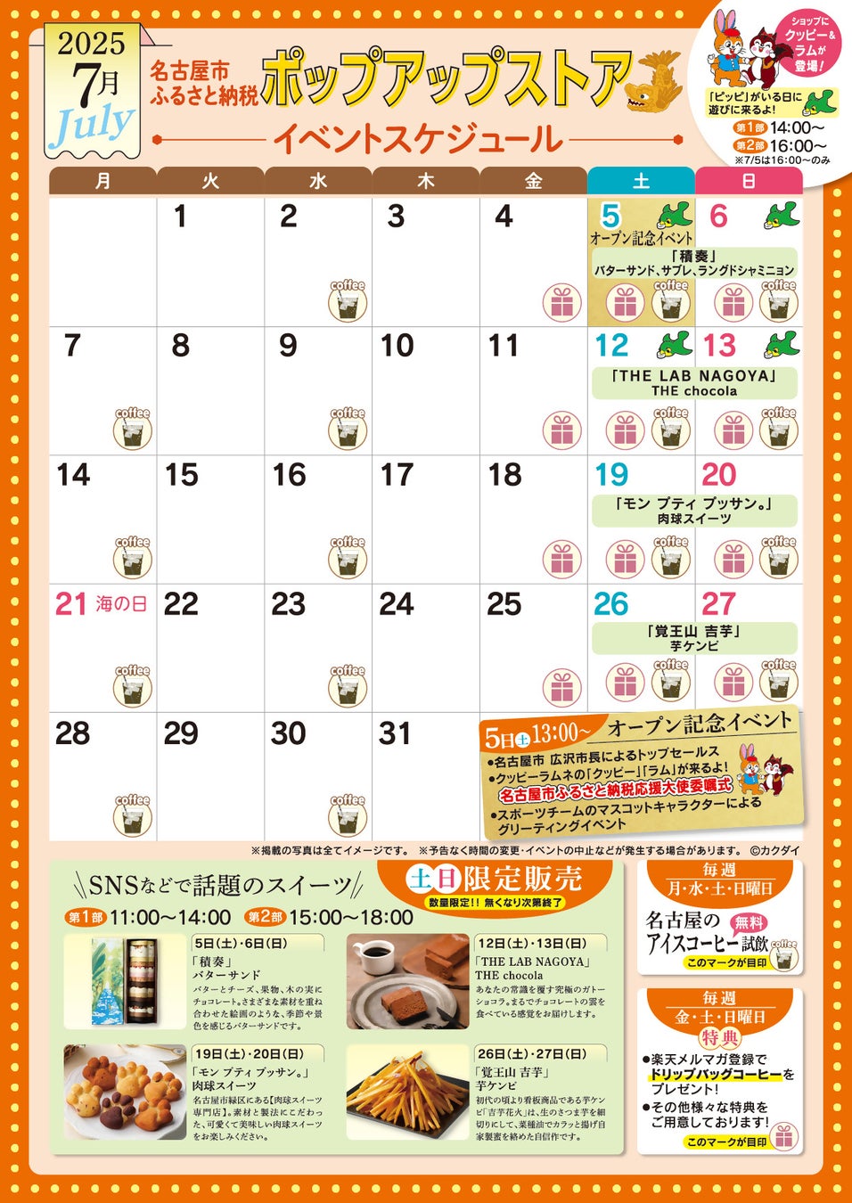 毎週土日には、名古屋の人気スイーツの限定販売など、特別なイベントも。
