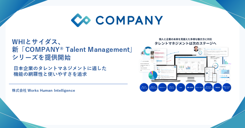 WHIとサイダス、新「COMPANY Talent Management」シリーズを提供開始 日本企業のタレントマネジメントに適した機能の網羅性と使いやすさを追求