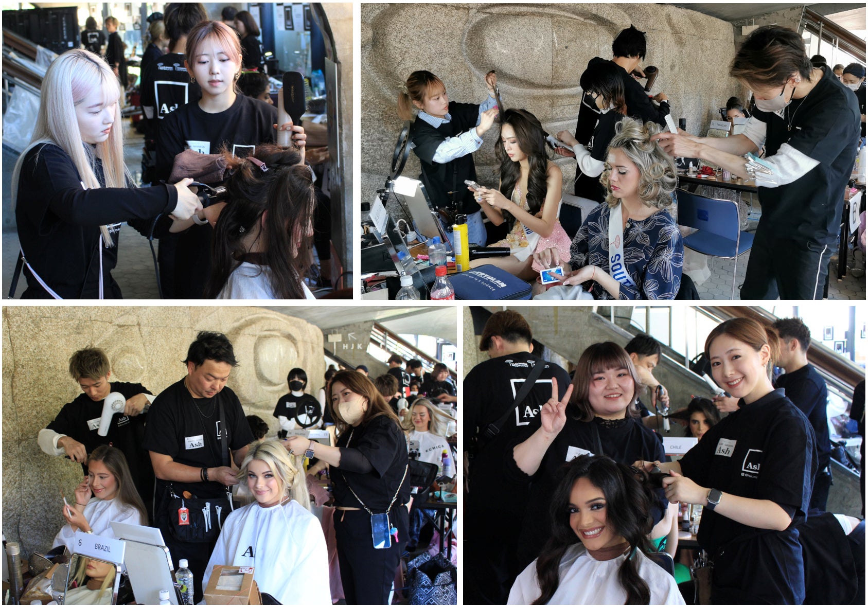 美容学生の入社動機にもなるイベントでのヘア&メイク経験 ミス・インターナショナル世界大会・日本大会のバックステージで美容室 Ashがヘアメイクを担当