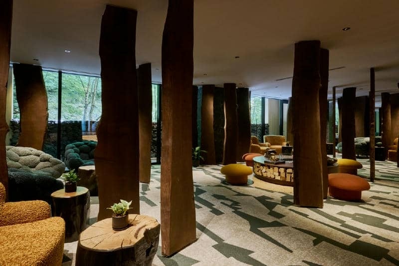また館内には軽井沢の自然と調和する木材を活かした落ち着きのあるロビーやラウンジもございます。軽井沢の四季の移ろいを五感で感じながら、特別なひとときをお過ごしください。
