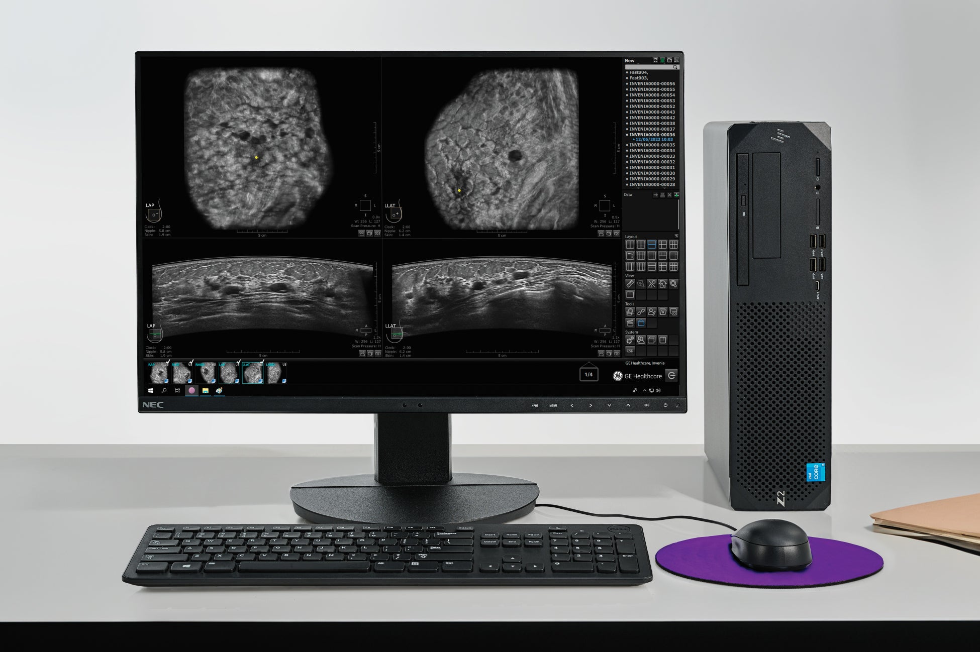 「Invenia ABUS」は、データ収集部分と読影部分を分離し、ワークフローをシンプルに設計することで乳房超音波検査にかかる作業工程の効率性の向上をはかります。