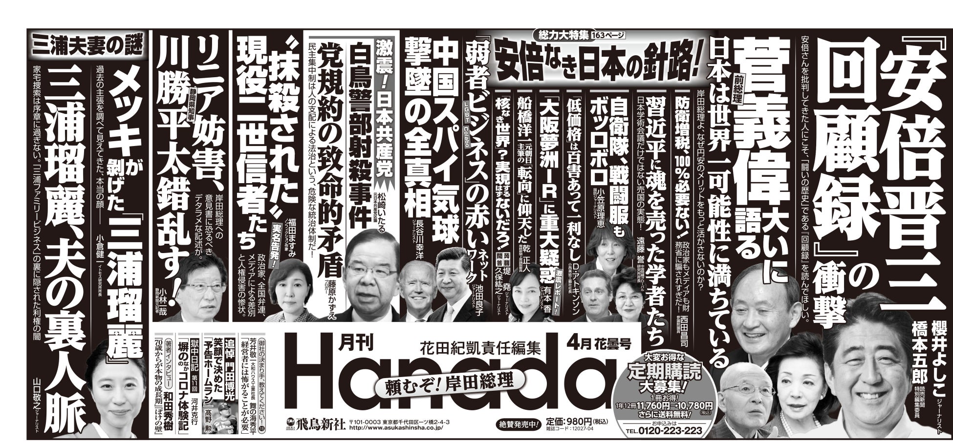 菅義偉前総理が2月24日発売の月刊『Hanada』4月号で、「円安のメリットをもっと活かすべきだ」と岸田総理に提言!