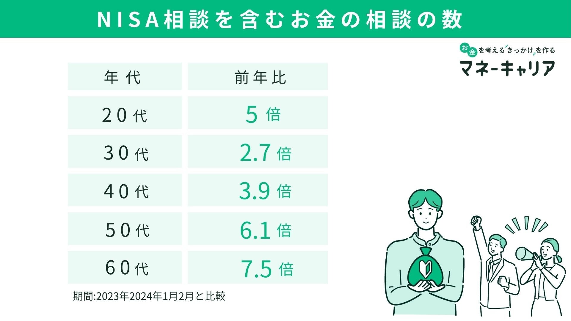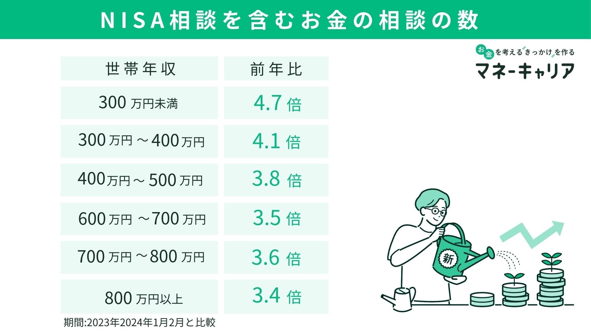 前年同時期にくらべ新NISAによりお金の相談ニーズ増加が顕著に。URL:https://money-career.com/
