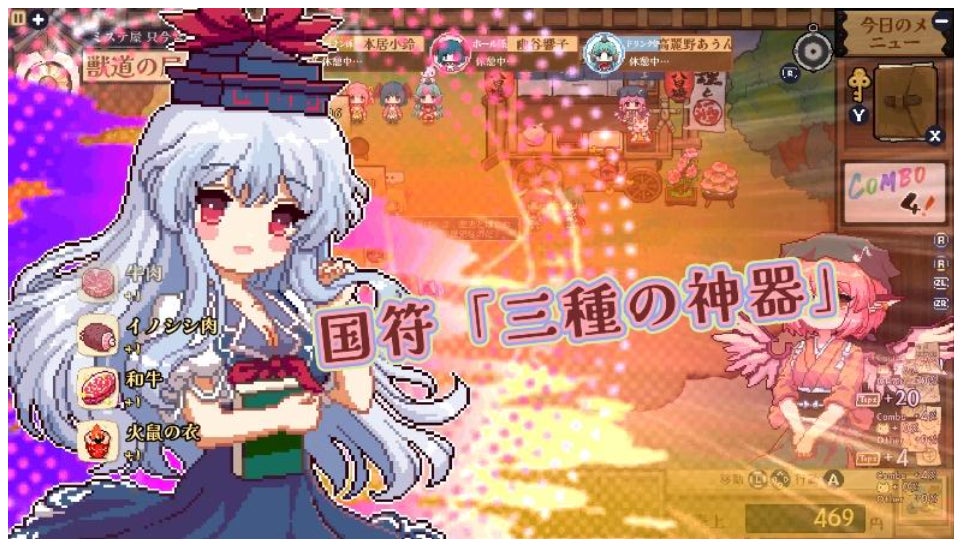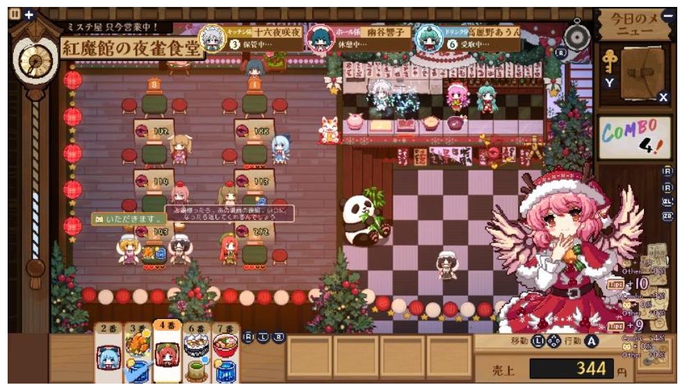 ▲ 特定のお客さんを満足させるとスペルカードで援護をしてくれます!