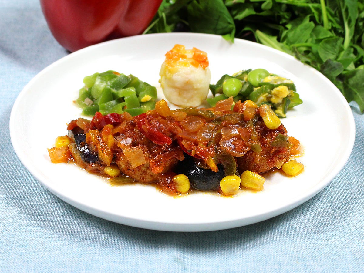 夏に食べたくなる爽やかで濃厚なラタトゥイユが仕上がりました。野菜と大豆ミートで作ったベジボールを使用しており、食べ応えは十分です。ベジボールはほろほろとした食感でお豆腐を想像させます。旬の夏野菜と一緒にお楽しみください。