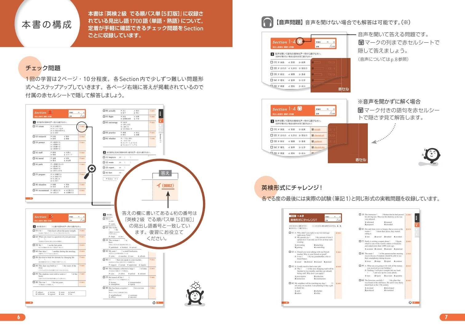 本書では、1回10分のチェック問題を解いていくことで、重要単語・熟語を記憶に定着させることができます。ロングセラーの単語集「英検(R) でる順パス単 5訂版」に完全に準拠しています。