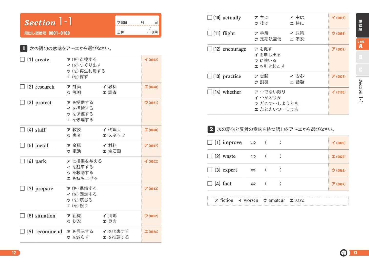 各「でる度」の最後には実際の試験と同じ形式の語彙問題を掲載しており、実戦的な力もつけることができます。