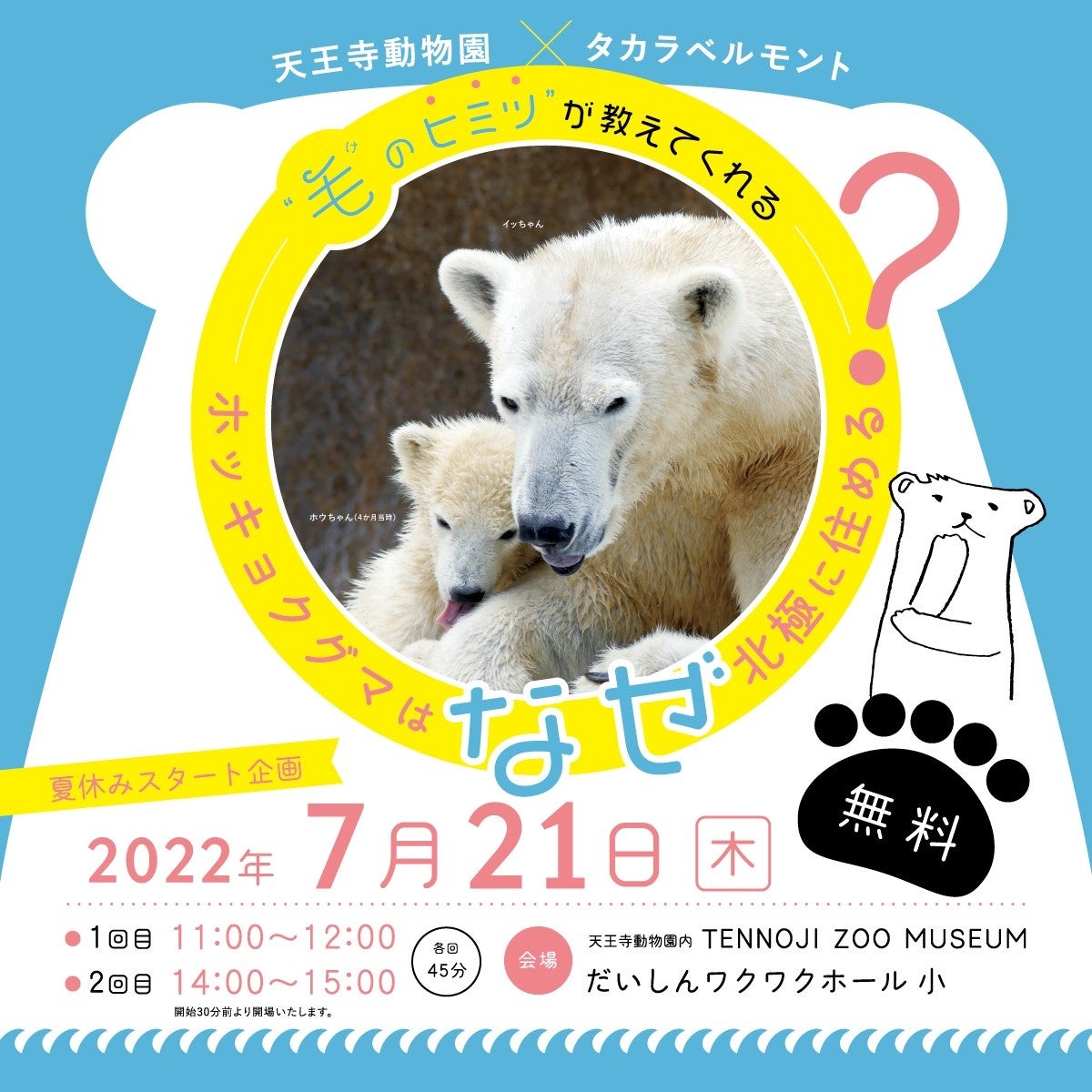 親子向け夏休み無料セミナー【“毛のヒミツ”が教えてくれる ホッキョクグマはなぜ北極に住める?】2022年7月21日(木)、天王寺動物園内 だいしんワクワクホール小にて開催