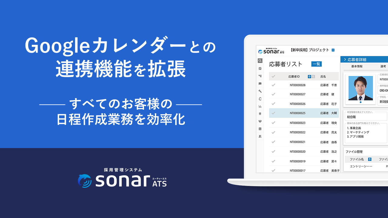 「採用管理システムsonar ATS」が、Googleカレンダーとの連携機能を拡張