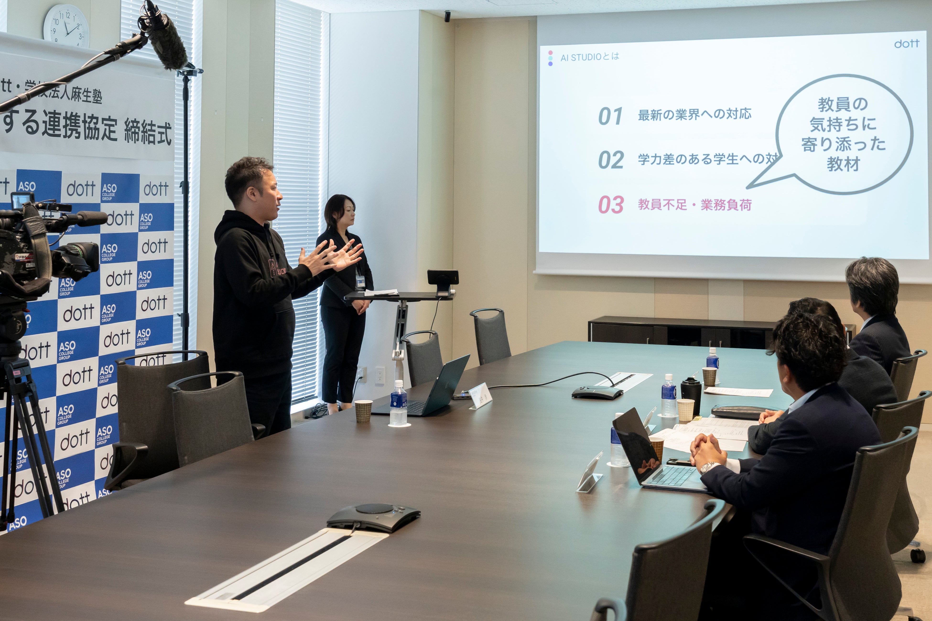 麻生塾にとっては、業界ごとのニーズに合ったAI教育の構築、またdottにとっても、得られたデータをもとに教材の改善やアップデートが可能となり、より実践的で効果的な学習コンテンツの開発につながります。麻生塾とdottの強みを掛け合わせることで、双方にとってメリットのあるAI教育モデルを築いていくことを目指します。