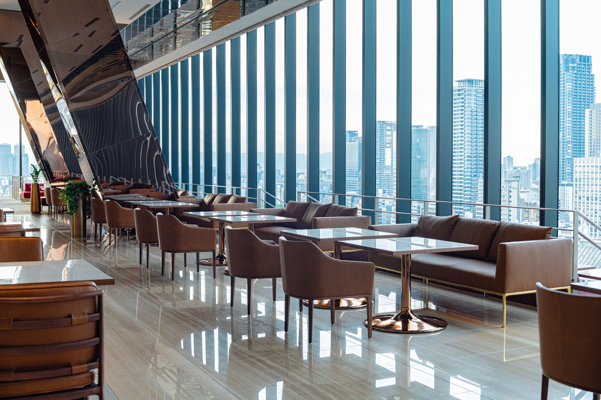 「カンデオホテルズ大阪ザ・タワー」の特徴として、最上階である31階、地上127.462mの高さから絶景が一望できる「インフィニティ露天風呂」や、カンデオホテルズ初の「エグゼクティブバーラウンジ」を完備しています。