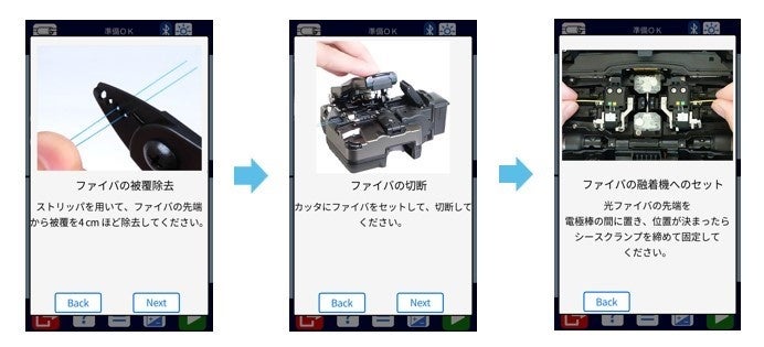 フジクラ製光ファイバ融着接続機の工具用ユーティリティアプリで、スマートフォンにインストールすると、融着接続データやファイバカッタの刃の使用回数を確認できるほか、工具の加熱温度の設定変更が可能になる無料アプリケーション。(※通信料は別途必要)