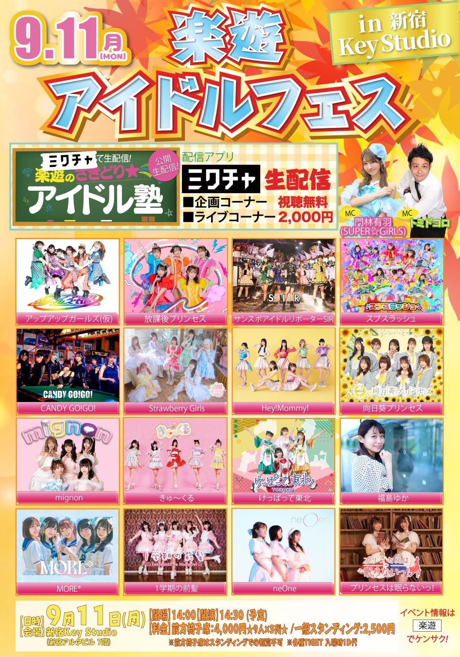新宿キースタジオに人気アイドルグループが大集合!毎月1回のお楽しみ、話題のアイドルイベント『楽遊アイドルフェス』が9/11開催!!