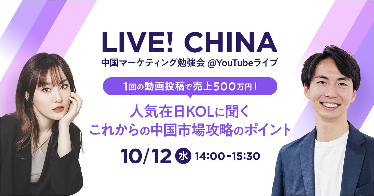 企業のマーケティングDXを支援するアライドアーキテクツ株式会社(東京都渋谷区、代表取締役社長 CEO:中村壮秀、証券コード:6081)で中国進出支援事業を展開するクロスボーダーカンパニー(カンパニープレジデント:番匠達也)は、企業の中国向け施策ご担当者様や最新の中国市場動向に詳しい識者の方々をゲストにお迎えして、対談形式でお話をお聞きするYouTubeライブセミナー「LIVE!CHINA」の第7回目として、「人気在日KOLに聞く、これからの中国市場攻略のポイント」を10月12日(水)に開催します。