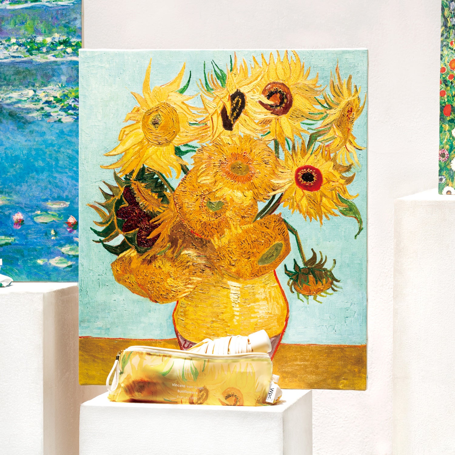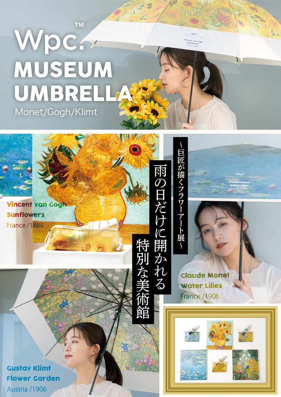 2023年秋冬の新作には”芸術の秋”にちなんだ「ミュージアムアンブレラ」が登場。モネの睡蓮、ゴッホのひまわり、クリムトのフラワーガーデンといった誰もが知る名画を傘にデザインしました。傘を開くとそこは自分だけの特別な美術館。視界いっぱいに色彩豊かな名画が広がります。