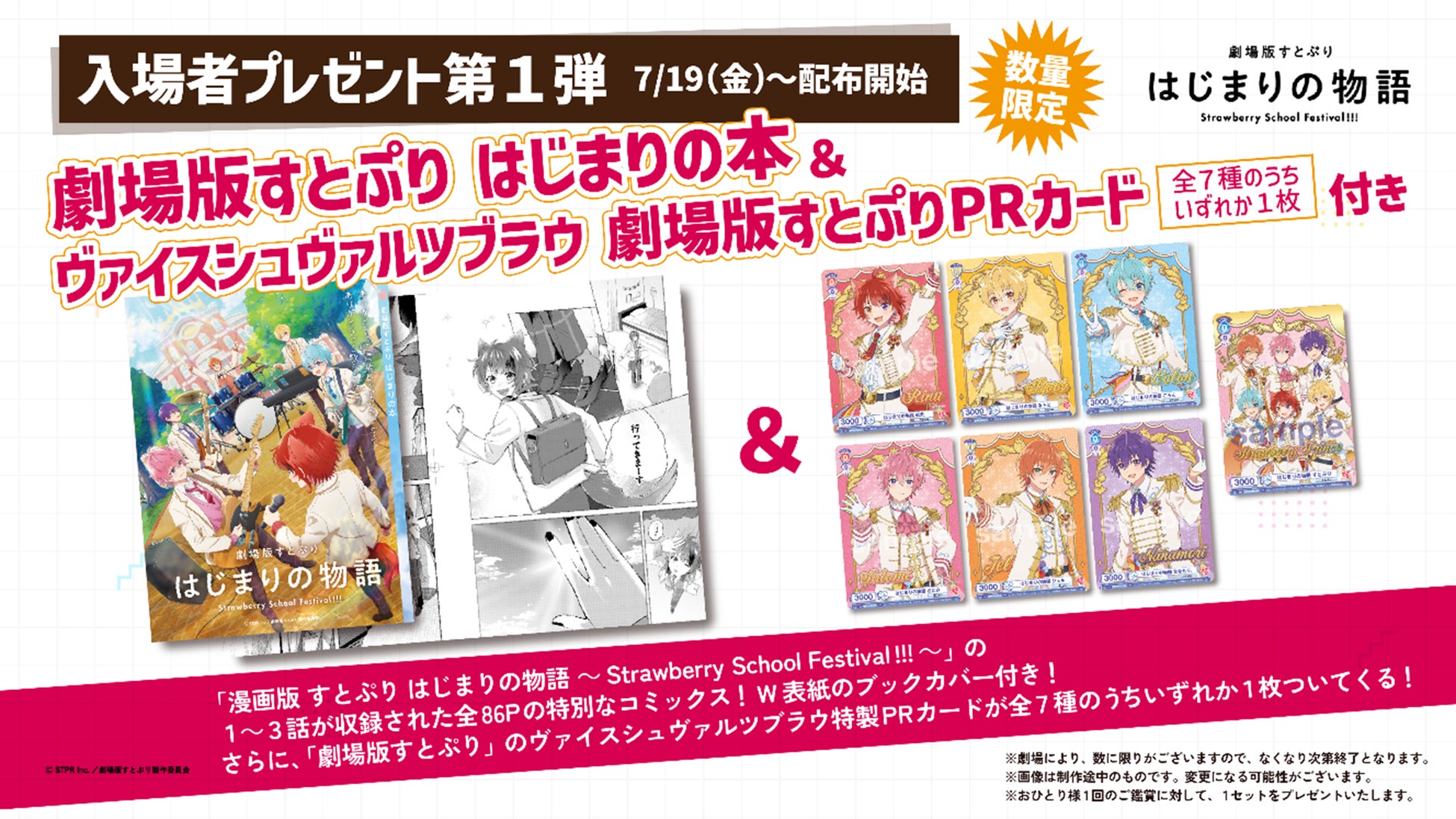 7月19日(金)から公開される『劇場版すとぷり はじまりの物語~Strawberry School Festival!!!~』にて配布される入場者プレゼント第1弾が決定!第1弾の入場者プレゼントは2つがセットになっています!