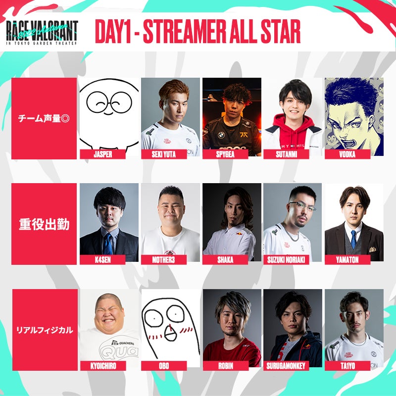 STREAMER ALL STARでは、ゲストプレイヤーのトップストリーマー15名で構成された3つのチームが総当たり戦を行いました。各試合は13ラウンド先取で勝利となります。